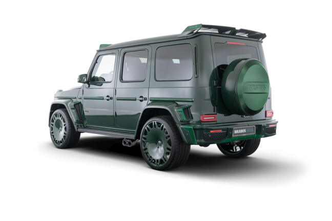 In der Seitenansicht sorgen die Kotflügel mit integrierten LED-Einstiegsleuchten für die Trittbretter sowie die Carbon-Spiegelkappen für eine unverkennbare Silhouette. Die Superlative setzt sich am Heck fort und sorgt mit einer Reihe von markanten WIDESTAR Details für einen bleibenden Eindruck. Carbon-Elemente akzentuieren die hinteren Kotflügel, die Schürze und die BRABUS Reserveradabdeckung – jeweils mit geprägtem BRABUS Branding. Abgerundet wird der aggressive Look durch den neu entwickelten Heckflügel, der sowohl die Aerodynamik als auch den unvergleichlichen 1-Second-Wow Effekt dieses BRABUS Masterpiece Geländewagens betont.