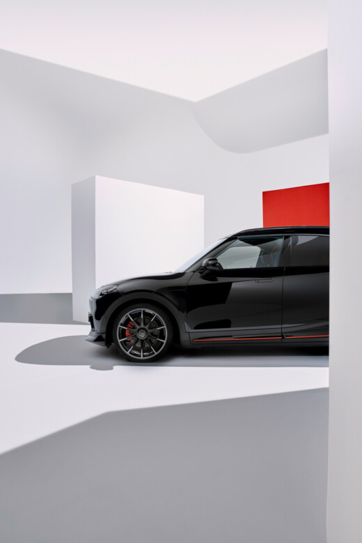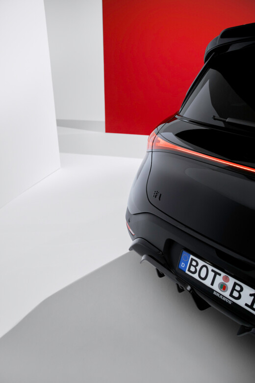 This wheel set not only gives the #1 top model a particularly bold look, but also makes the handling even more agile. An effect that can be further optimized by the BRABUS sports springs, which lower the electric sports compact by 35 millimeters (1.4 in).