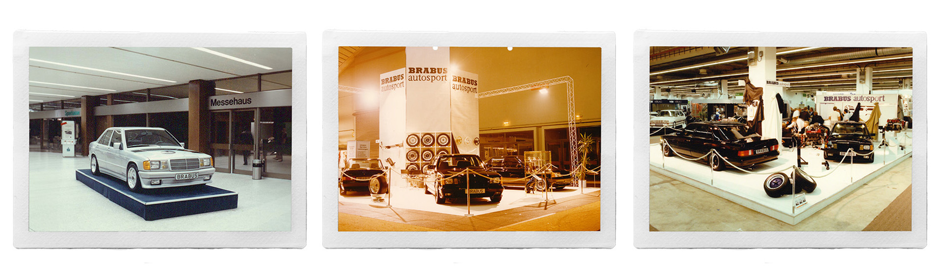 Bereits 1985 sind legendäre BRABUS Fahrzeuge auf Basis der Mercedes-Benz Baureihen W 123, W 126 und W 201 auf einigen der bedeutendsten internationalen Automobilmessen zu sehen.