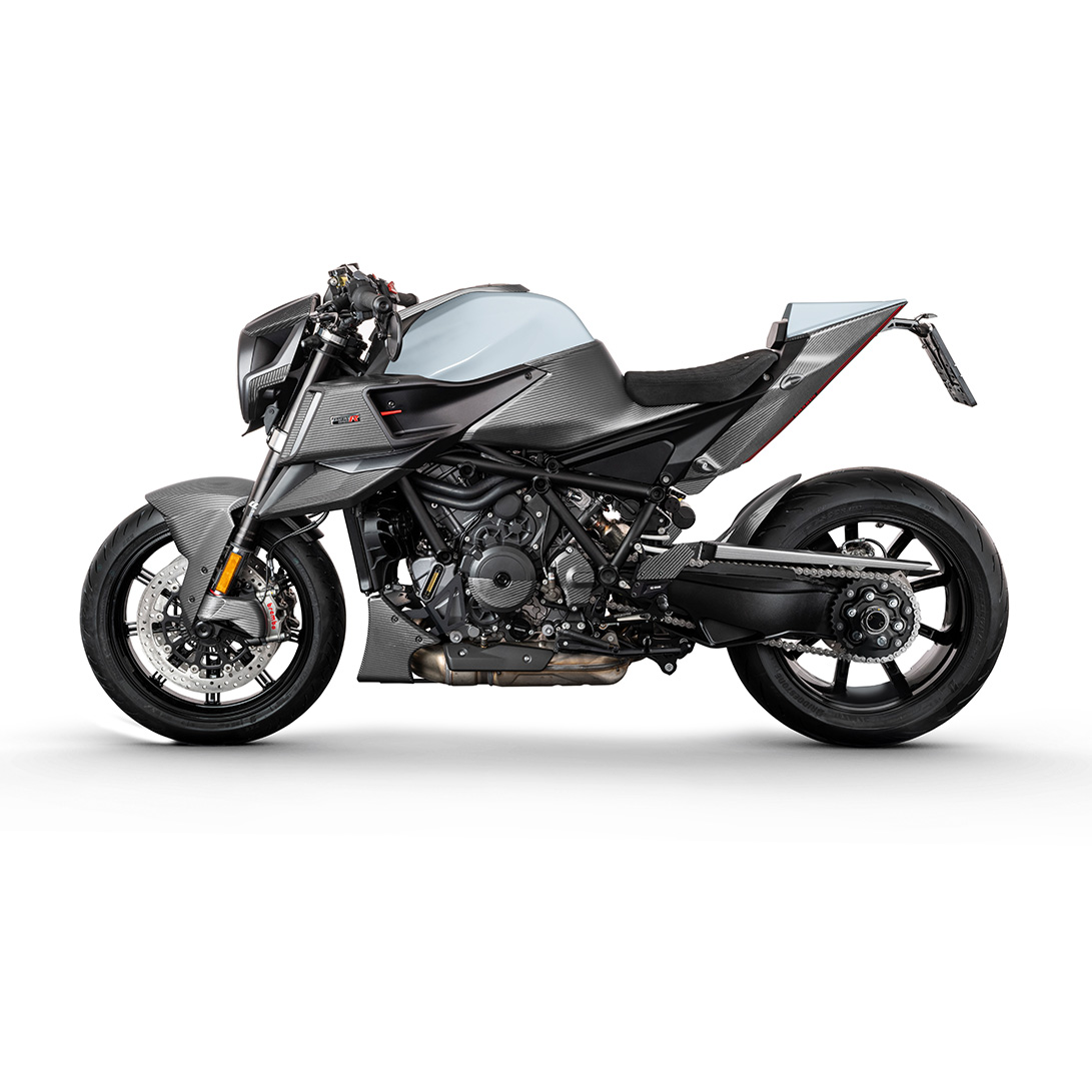 Basierend auf der Technologieplattform ihrer Vorgängerin ist die BRABUS 1300 R Edition 23 mit dem 1.301 cm³ V-Twin Motor der KTM 1290 SUPER DUKE R EVO ausgestattet, der 180 PS bei 9.500 U/min und 140 Nm Drehmoment bei 8.000 U/min leistet. Als Maßstab der V-Twin-Evolution bietet diese High-End-Konfiguration eine exzellente Leistungsentfaltung. Der BRABUS Doppelrohr-Slip-On-Auspuff unterstreicht den unverwechselbaren Charakter ebenso wie einen massiven Sound.