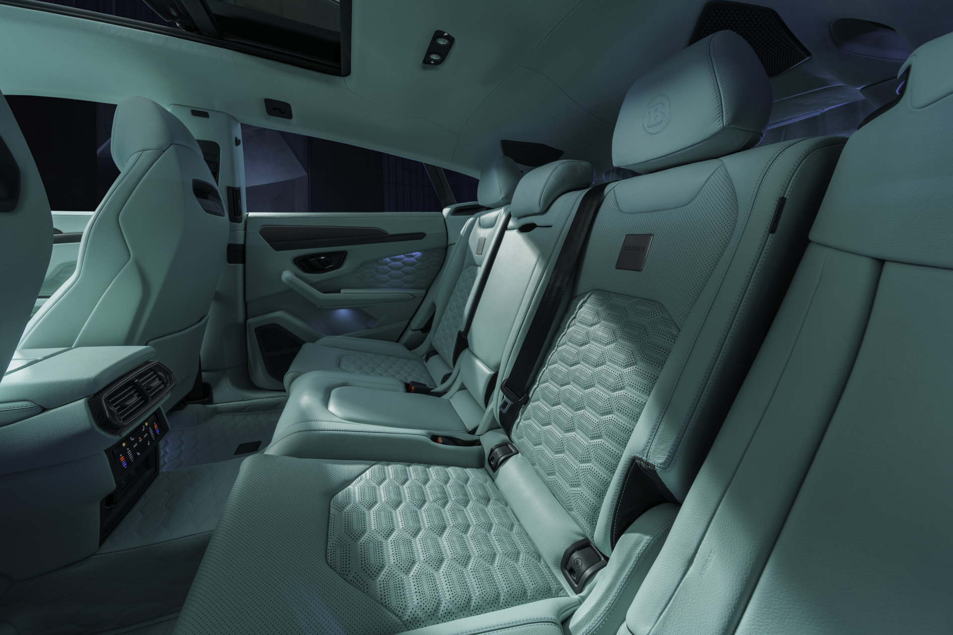 Das maßgeschneiderte Masterpiece Interieur des BRABUS 900 MINT bildet einen stilvollen Gegenpol zum ausdrucksstarken Exterieur. Hochwertiges BRABUS Leder in der exklusiven Farbe „Stone Mint“ prägt den Innenraum und greift die Außenfarbe konsequent auf. Über Sitze, Türverkleidungen und Cockpitflächen hinweg erzeugt das avantgardistische Farbkonzept eine extravagante und zugleich elegant-moderne Atmosphäre.