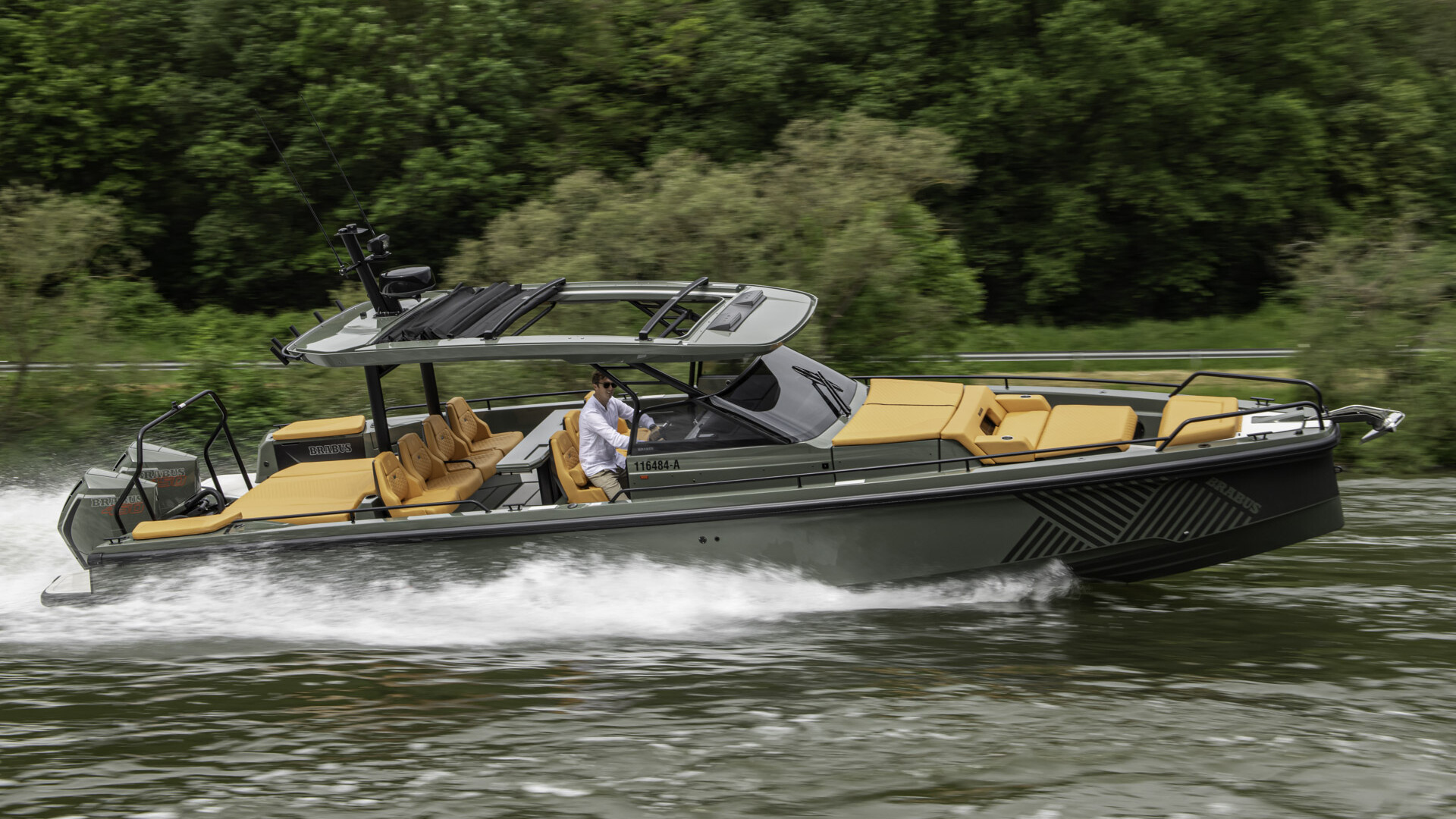 At first glance, the boat impresses with an BRABUS design scheme, combining a distinctive paint job in BRABUS “Stealth Green” with matching Signature Style graphics. It has a wide range of high-grade carbon elements, contrasting matte black detail work, and the BRABUS “Sunrise” upholstery color. High-quality, quilted upholstery material and branded detailing is found all around the boat. This eye-catching detail is one of the areas where BRABUS excels across all its product lines.