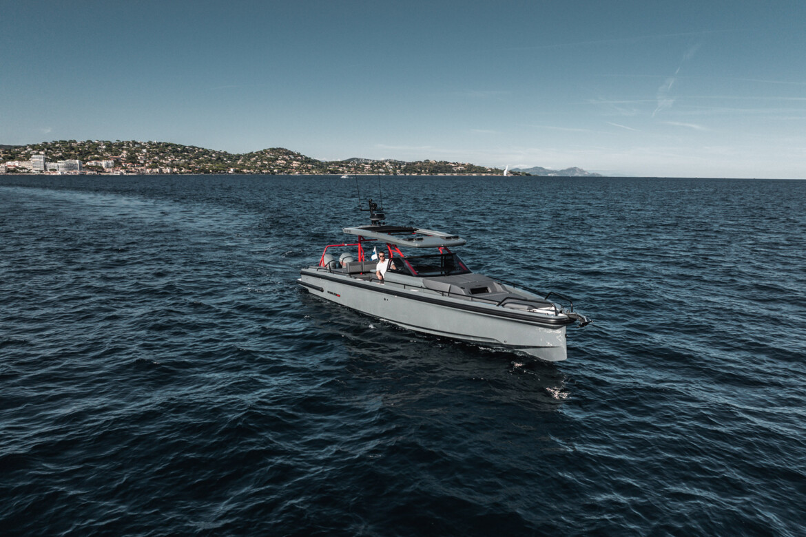 The Phantom Grey Signature Edition look boasts an unmistakable BRABUS 1-Second-Wow effect courtesy of its namesake “Phantom Grey” paintjob. Matching upholstery colors in BRABUS Red as well as a bespoke outfitting package featuring BRABUS Red roof racks, waterski frames and roof pillars set further sporty accents inspired in every detail by the design of the BRABUS Crawler. This exclusive superboat is hand-built with a focus on precision and finish. The process of fairing, painting and polishing alone takes up to six weeks due to non-automated, thorough and highly labor-intensive processes.