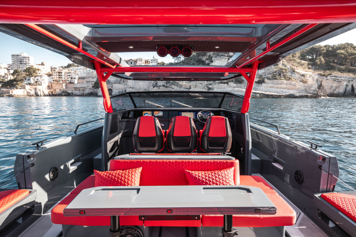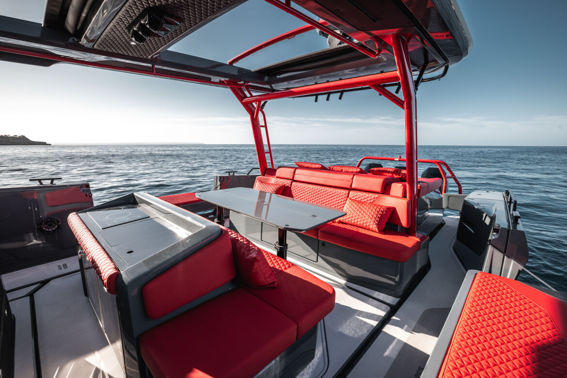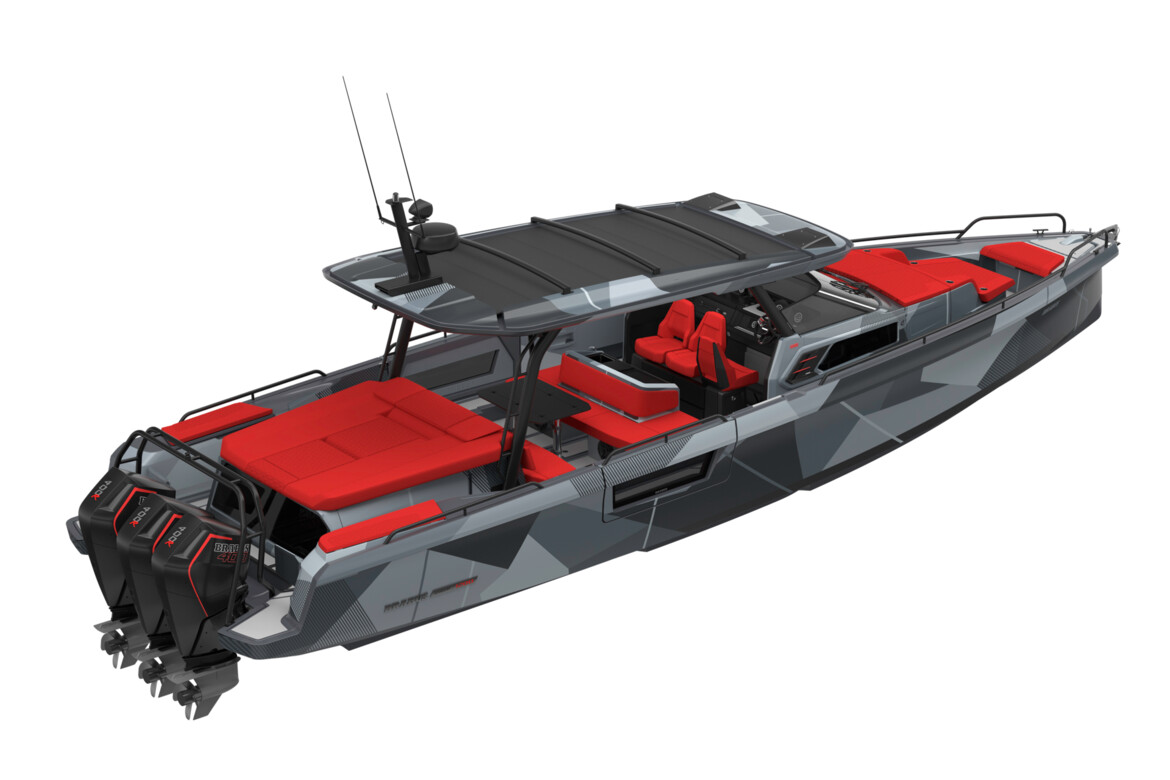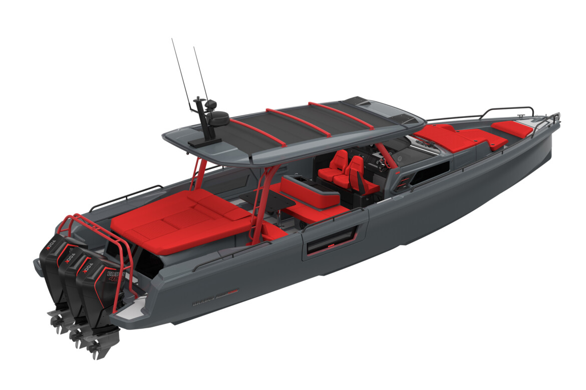 The BRABUS Shadow 1200 is a perfect match for those who want to renounce compromises and make an undeniable statement. The new BRABUS Shadow 1200 Sun-Top premieres in the all-new Phantom Grey Signature Edition look, inspired by the BRABUS Crawler, boasting a dark, unmistakable Phantom Grey paint job with upholstery colors in BRABUS Red as well as a bespoke outfitting package featuring BRABUS Red roof racks, waterski frames and roof pillars. This special edition is hand-built with a focus on precision and finish. The process of fairing, painting, and polishing alone takes up to six weeks due to non-automated, thorough, and highly labor-intensive processes.