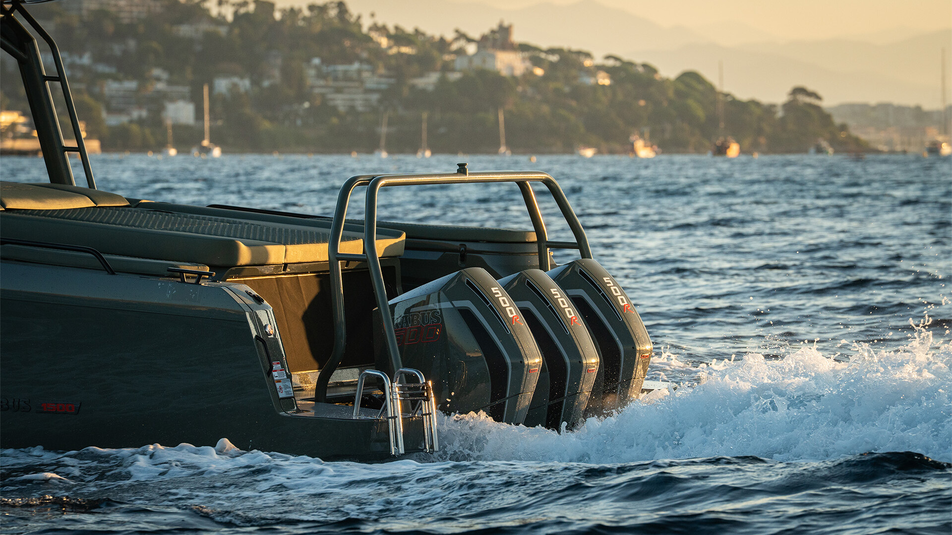 Shadow 1500: Triple Mercury Racing 500R 4.6l V8 supercharged outboard engines with a combined power output of 1,500 hp (1,118 kW)