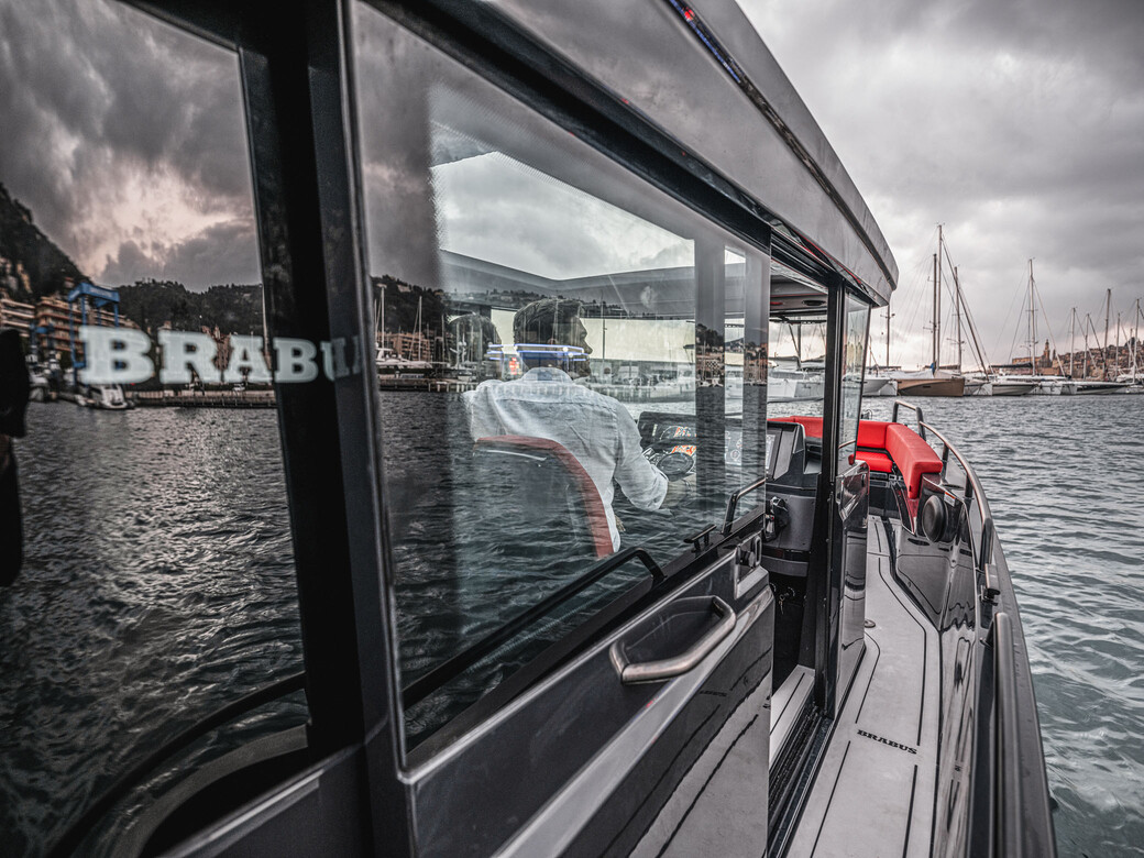 Carbon fibre - Visible carbon-fibre parts complete the ultra-cool looks of the dashboard and seat trims and further emphasizes the clean and high tech look of the boat. All carbon-fiber parts are made in-house and supplied directly to the boat factory from the BRABUS headquarters in Germany.