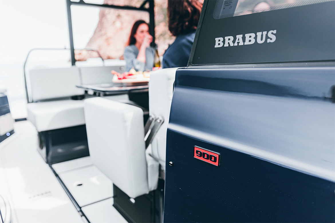 Carrying on the legacy of the award winning BRABUS Shadow 900 range, this exclusive Signature Edition is equipped with a selection of premium features and details, ranging from its unmistakable Deep Blue paint scheme – a result of high labor-intensive fairing, painting and polishing processes – to smart and innovative space utilisation. Customers can choose between a fully open aft option, an extensive wetbar package, a multi-storage package for the storage of adventure equipment and outdoor-lifestyle gear or the luxurious and supremely comfortable aft cabin with a ‘queen size’ sleeping accommodation.