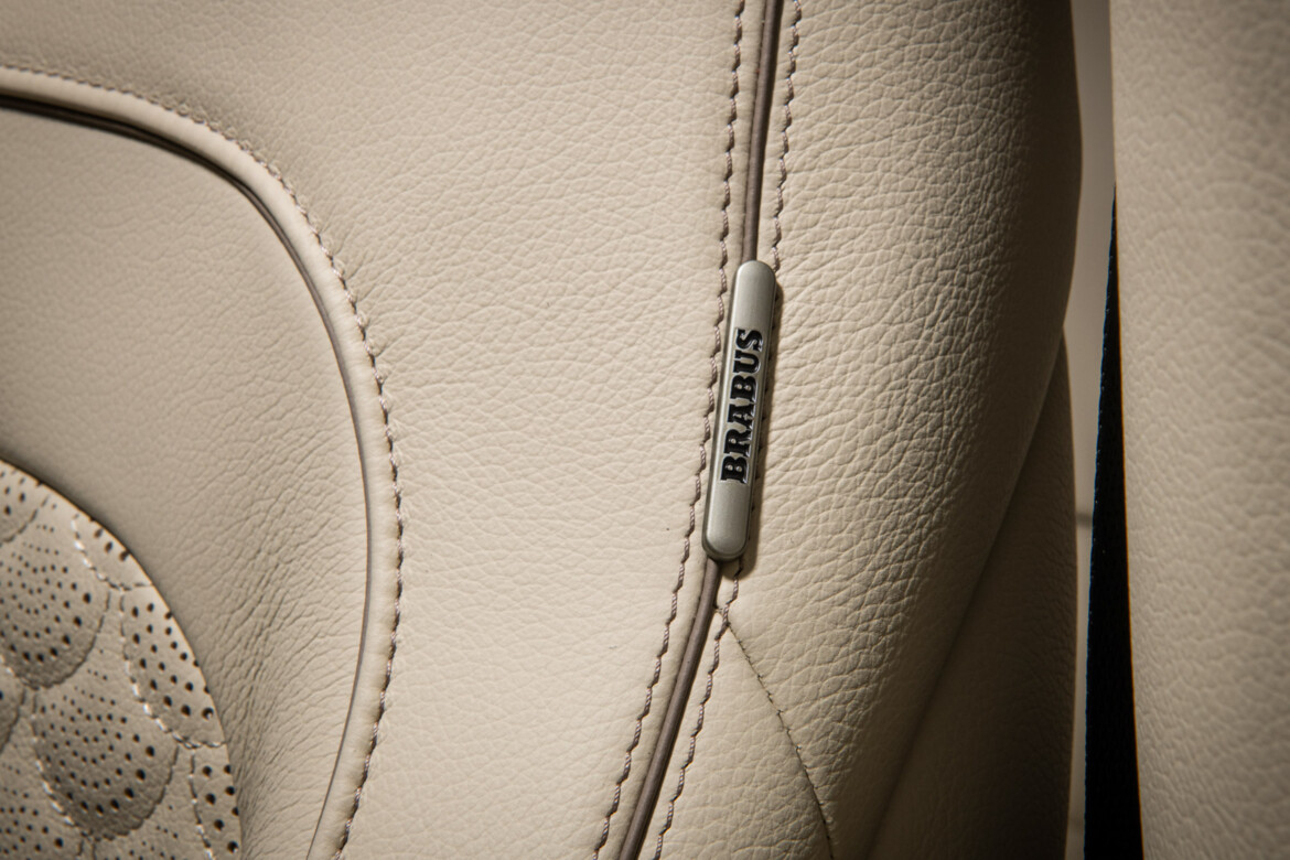 BRABUS Masterpiece style ATELIER FUSION in color OXFORD SAND with Shell-quilting with embossed BRABUS logo. Piping and seams also in OXFORD SAND