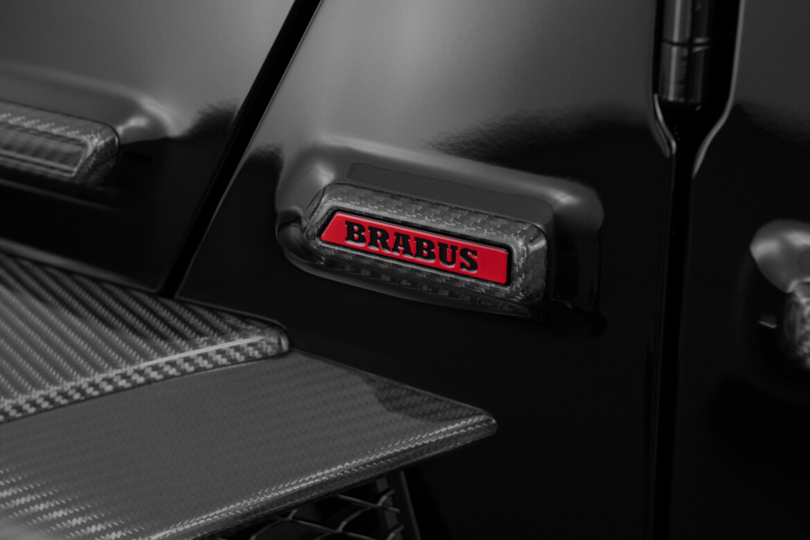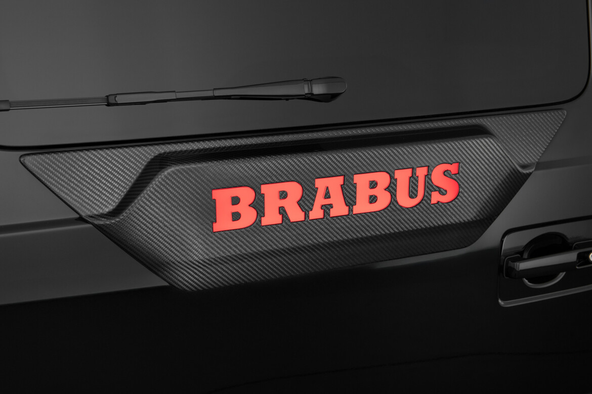 Carbon rear door attachment with illuminated BRABUS lettering as brake light
