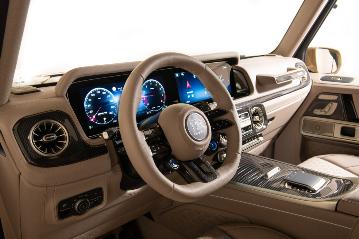 BRABUS fine leather in OUTBACK SAND colour with shell design quilting and ‘B’ embossing