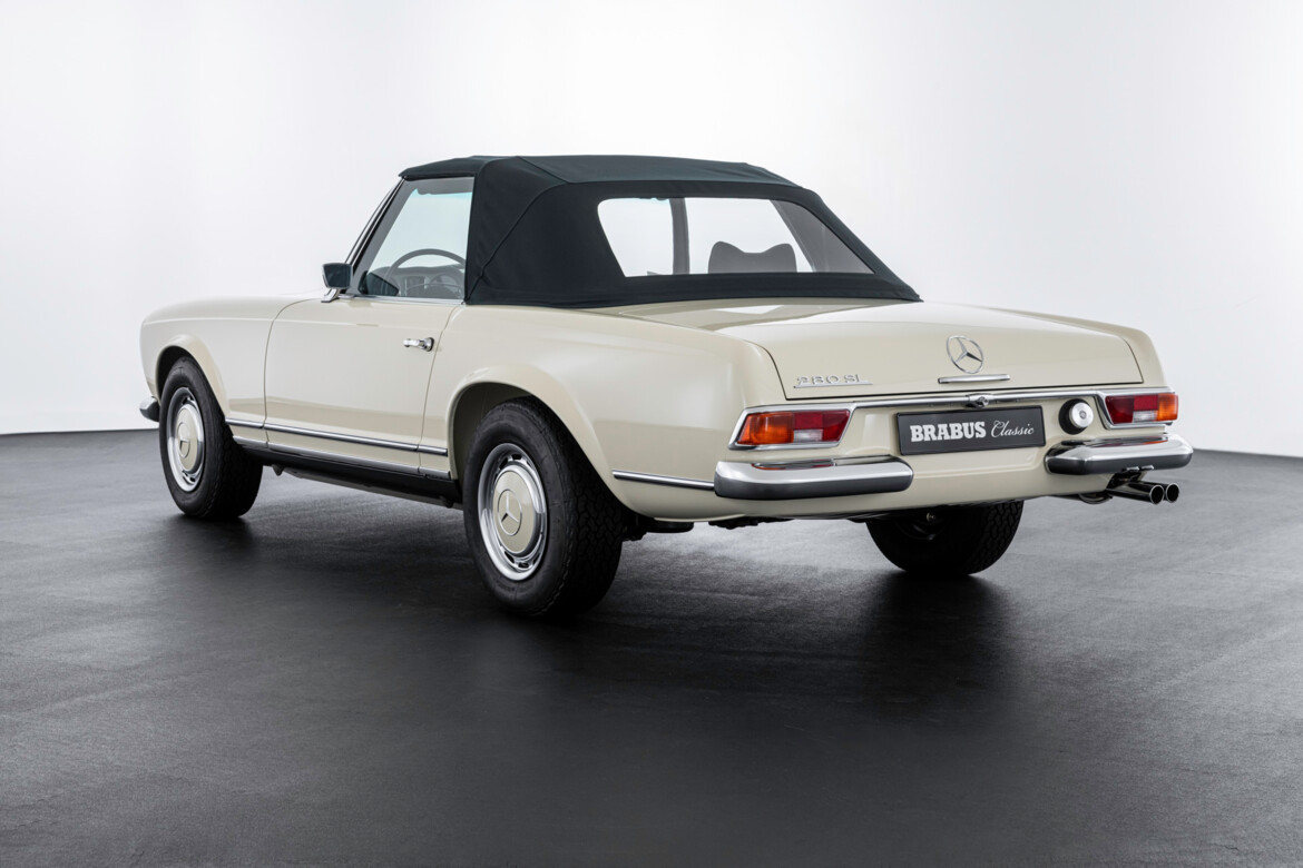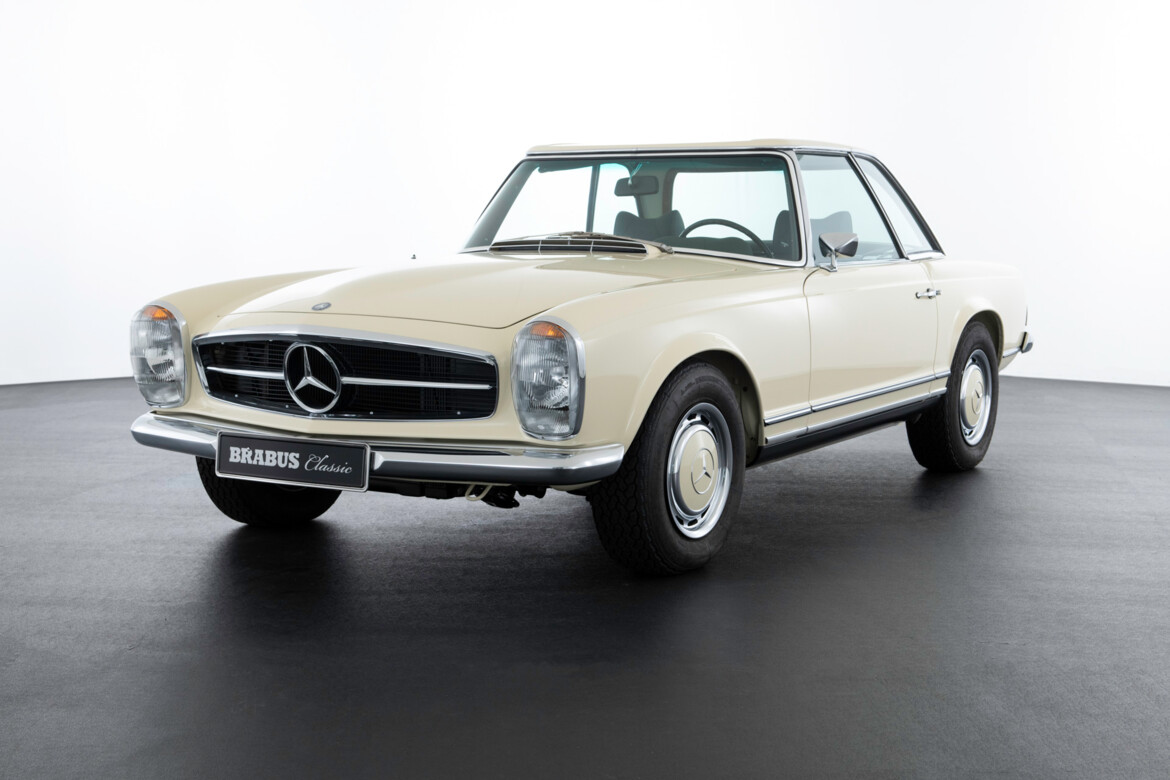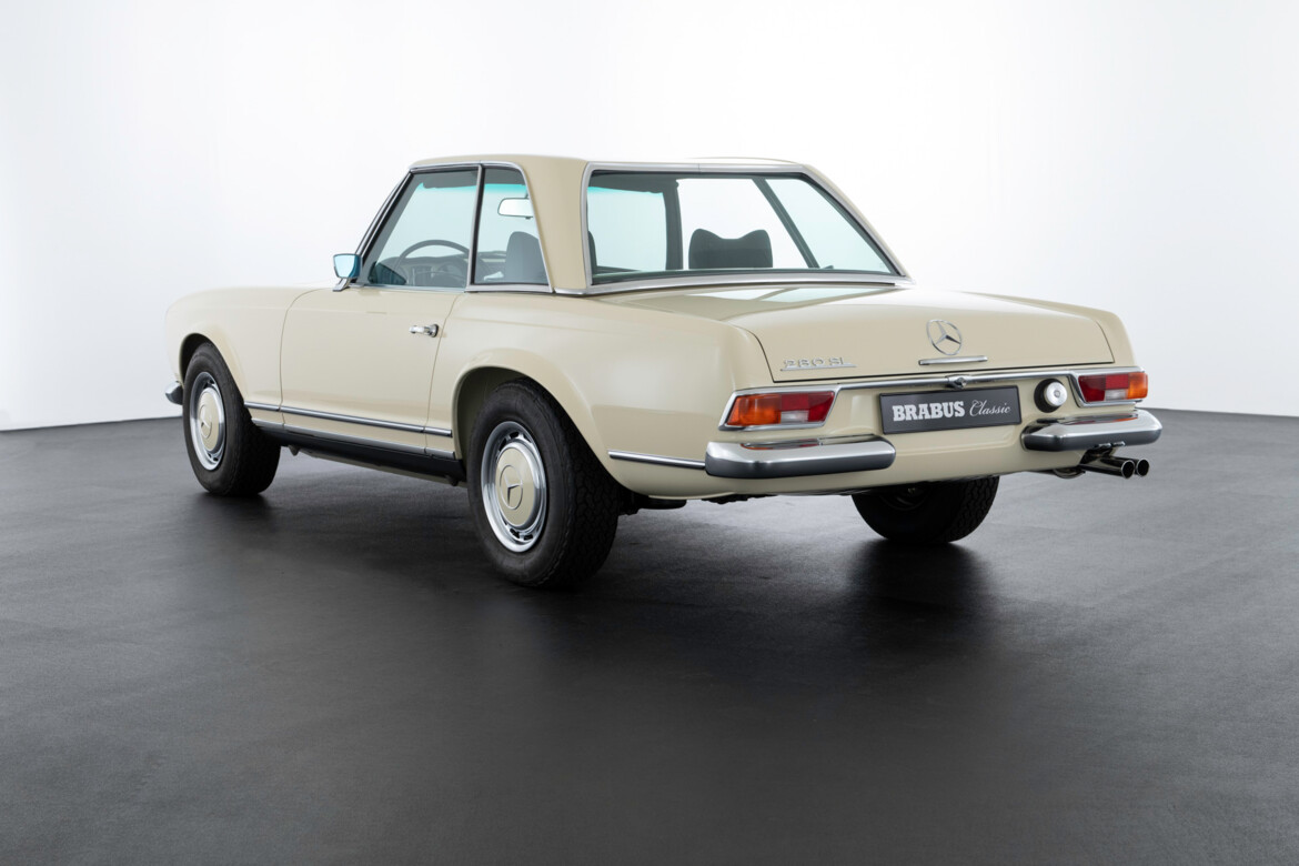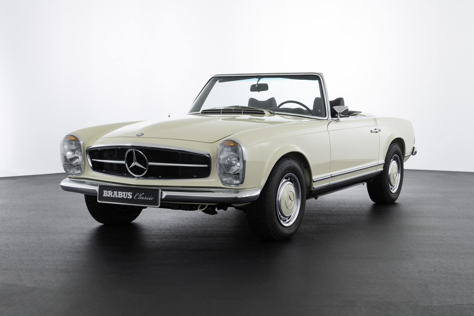 A superior display of power coupled with sporty elegance: the Mercedes-Benz Pagoda presented at the Geneva Motor Show in March 1963 caused a sensation not only among experts. The 230 SL was the worlds first sports car with an innovative safety body, from 1967 to 1971 the further developed 280 SL came off the production line. The two-seater Roadster is launched with unique comfort, exeptional performance and unprecedented driving safety for a sports car. Visually, the removeable coupé roof designed by Paul Braque and arched inwards is reminiscent of the curved roofs of asian temples and the "Pagode" was born. BRABUS is now reviving this legend with the unique 6-star restoration.