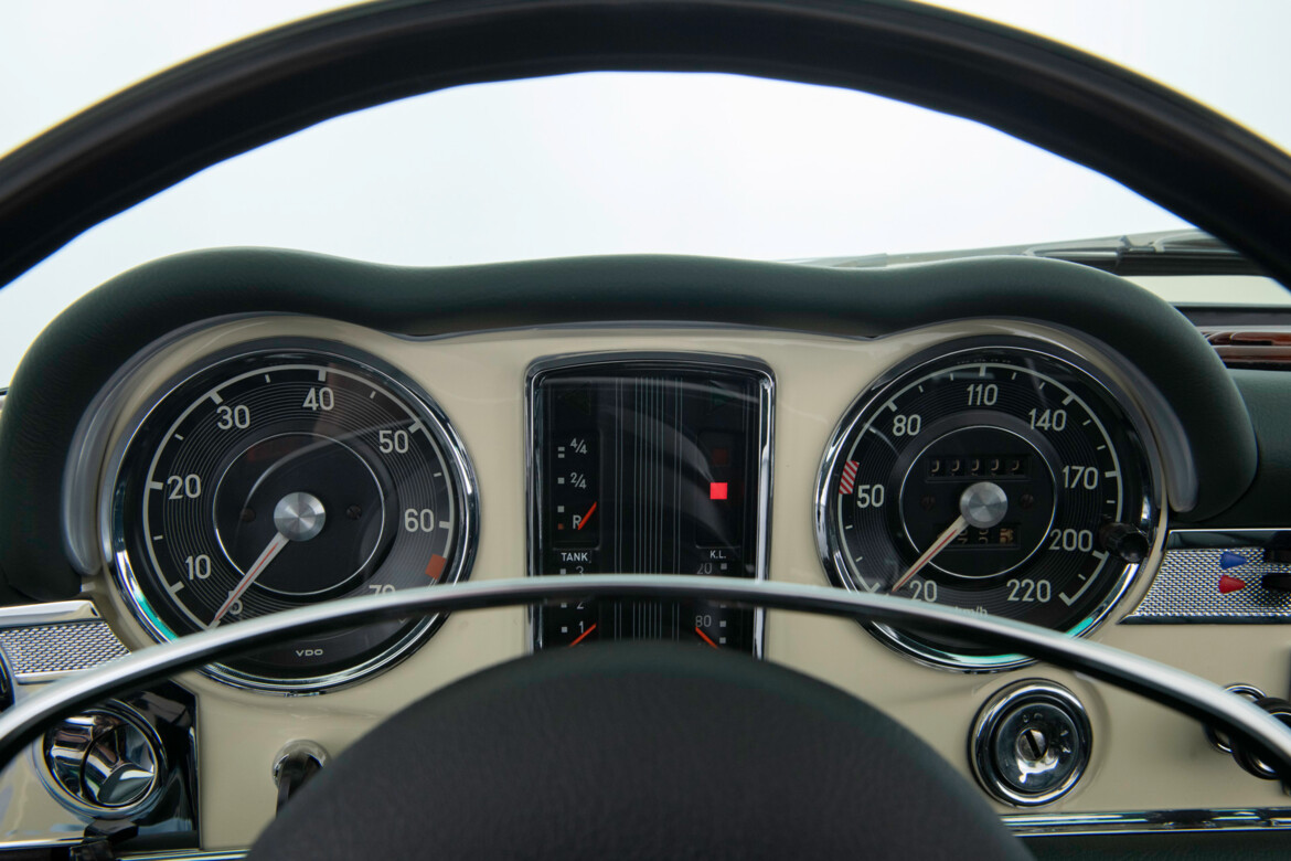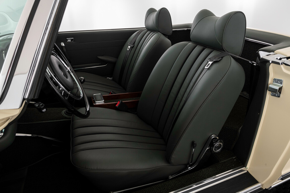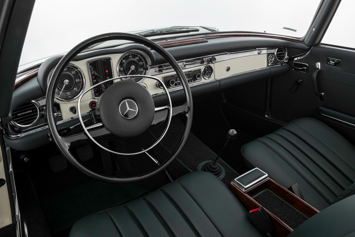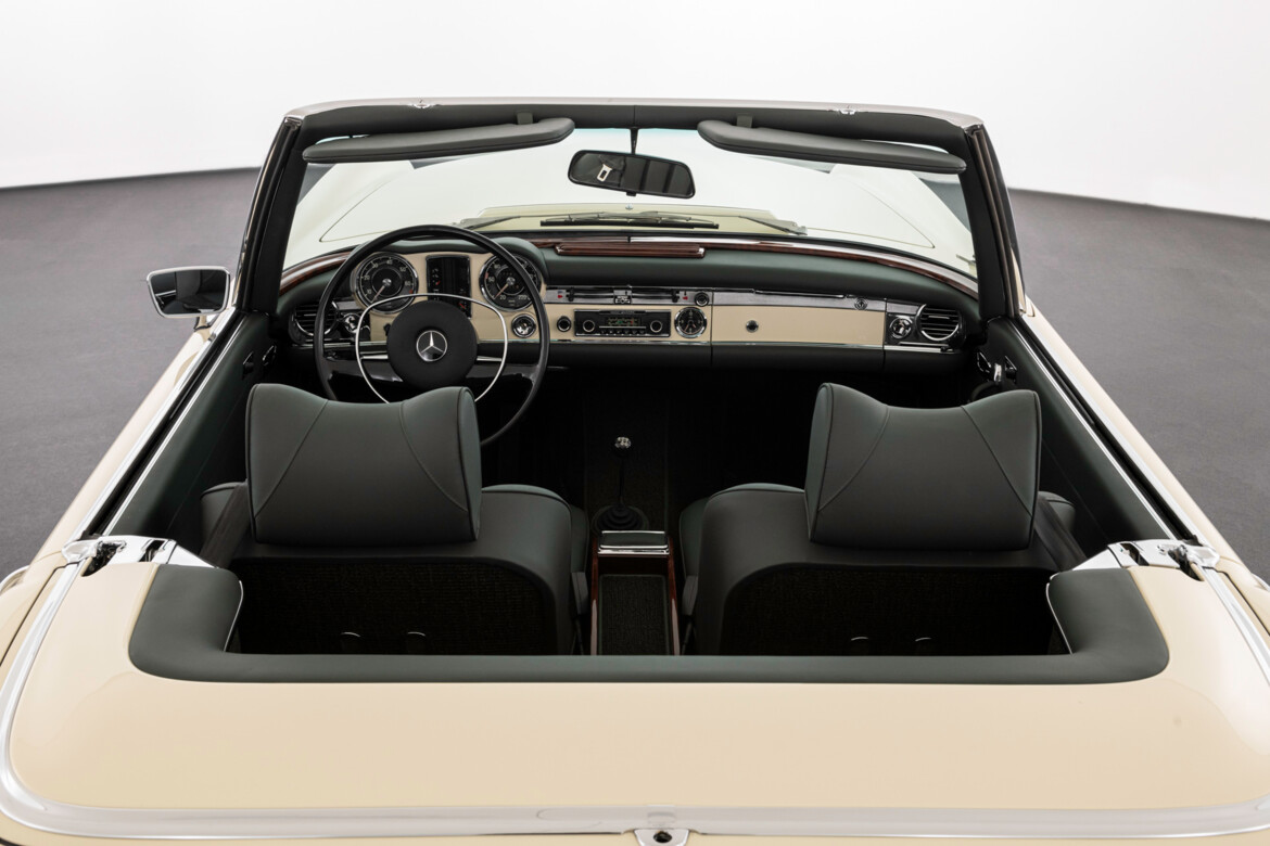 A superior display of power coupled with sporty elegance: the Mercedes-Benz Pagoda presented at the Geneva Motor Show in March 1963 caused a sensation not only among experts. The 230 SL was the worlds first sports car with an innovative safety body, from 1967 to 1971 the further developed 280 SL came off the production line. The two-seater Roadster is launched with unique comfort, exeptional performance and unprecedented driving safety for a sports car. Visually, the removeable coupé roof designed by Paul Braque and arched inwards is reminiscent of the curved roofs of asian temples and the "Pagode" was born. BRABUS is now reviving this legend with the unique 6-star restoration.