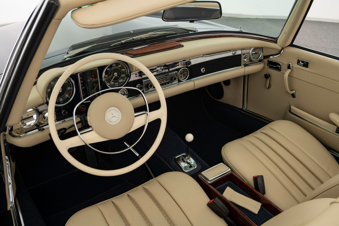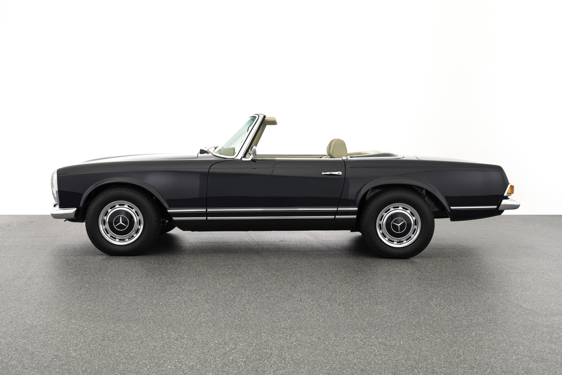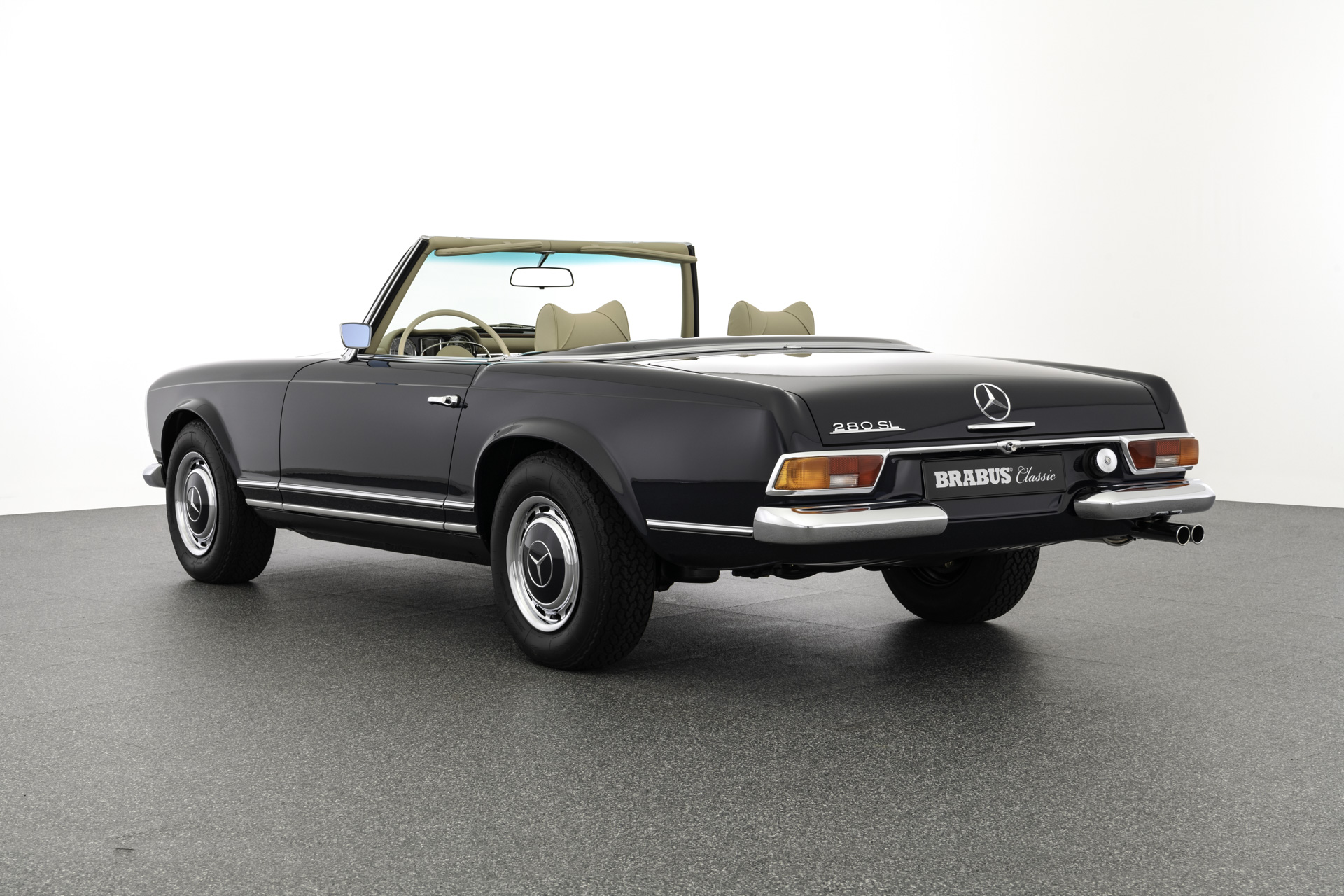 A superior display of power coupled with sporty elegance: the Mercedes-Benz Pagoda presented at the Geneva Motor Show in March 1963 caused a sensation not only among experts. The 230 SL was the worlds first sports car with an innovative safety body, from 1967 to 1971 the further developed 280 SL came off the production line. The two-seater Roadster is launched with unique comfort, exeptional performance and unprecedented driving safety for a sports car. Visually, the removeable coupé roof designed by Paul Braque and arched inwards is reminiscent of the curved roofs of asian temples and the "Pagode" was born. BRABUS is now reviving this legend with the unique 6-star restoration.