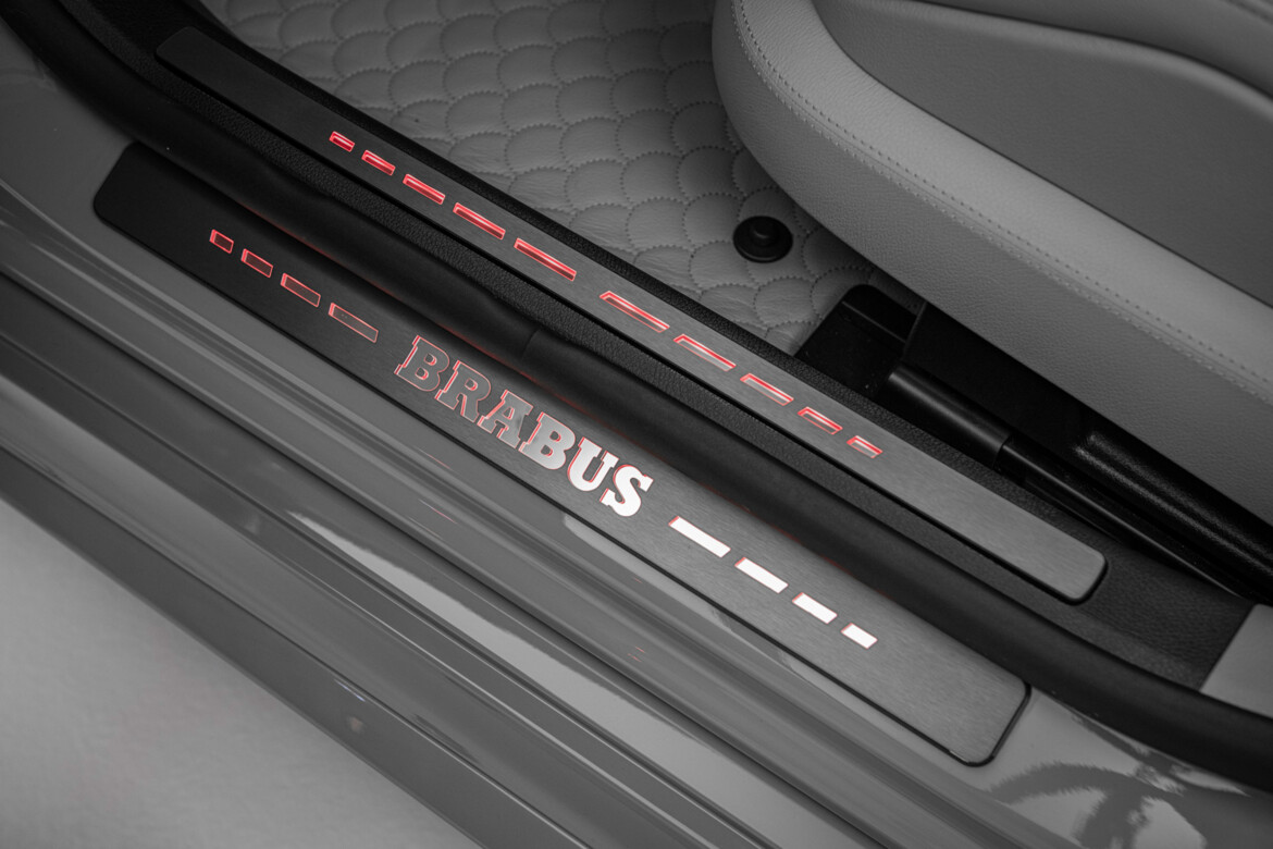 A selection of high-gloss sealed BRABUS Signature Carbon elements integrated into the dashboard, steering wheel, center console and door panels set further sporty accents inside the cabin. The interior is rounded off by a selection of additional custom features, such as the BRABUS carbon pedals and the BRABUS aluminum entry panels complete with an illuminated BRABUS logo, which changes color in tune with the ambient lighting.
