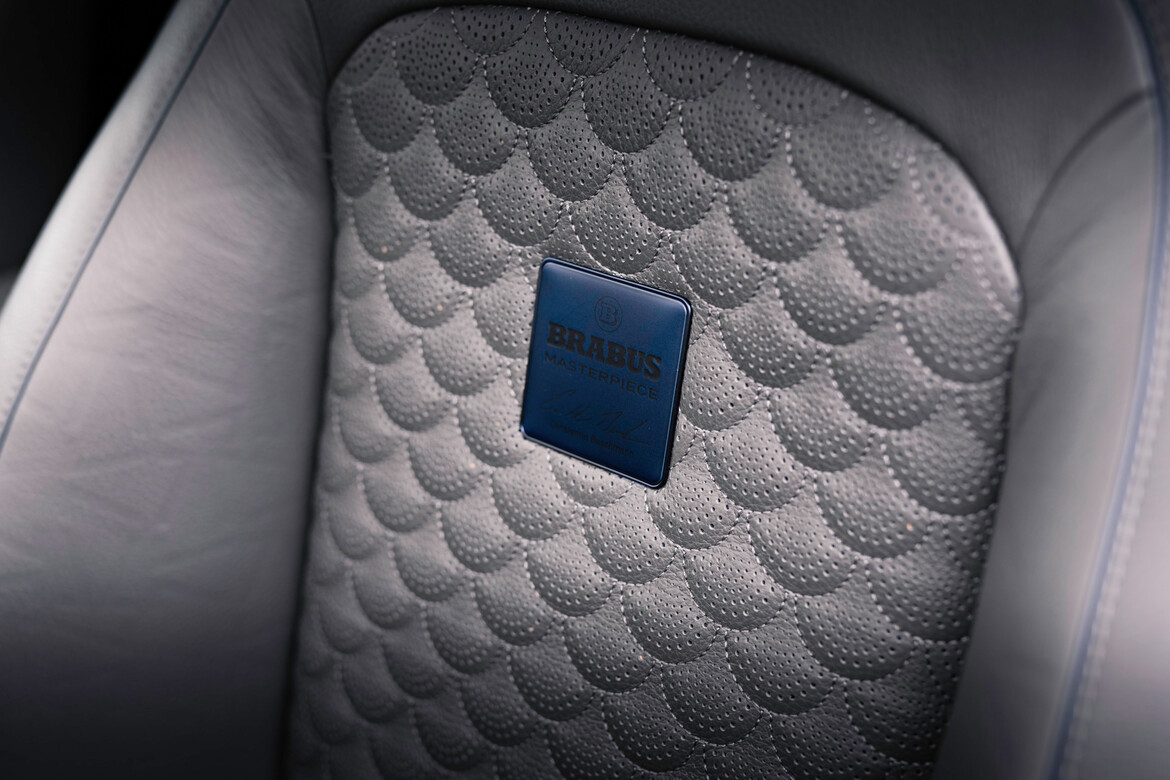 Experience modern elegance, inspired by the ocean – our interior design specialists developed a bespoke, fully handcrafted BRABUS Masterpiece interior for the BRABUS 900 Deep Blue to tastefully accentuate its signature Deep Blue looks. Refined down the last detail, the luxurious fine leather design in “Slate Gray” impresses with its impeccable finish, complete with special BRABUS “Seashell Diamond” quilting and perforations applied with pinpoint precision around the entire cabin including the seats, trim elements and the foot wells, likewise upholstered in the finest leather. Matching Deep Blue piping and “Slate Gray” stitching adds intriguing detail. As a stylish homage, several interior elements of this special edition have been finished with the "Heritage" brand pattern, which pays tribute to our founding year – 1977, and thus to over four decades of BRABUS with its embossed "77" signets.