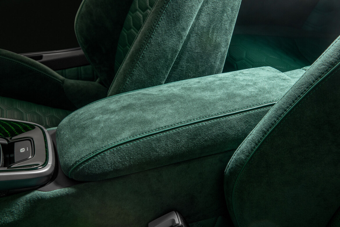 Inside the BRABUS 900 ROCKET R MEAN GREEN, you will find an interior as bold as its exterior—enveloped in the distinctive elegance of a true BRABUS Masterpiece and handmade with uncompromising precision. The cockpit is an immersive sea of green Alcantara, creating a luxurious atmosphere that wraps around you from every angle. Every surface, from the seats to the dashboard, is expertly upholstered in the characteristically soft microfiber, excluding the middle seat surfaces, middle door panels and parts of the steering wheel, where green leather takes over—creating a sophisticated material contrast.