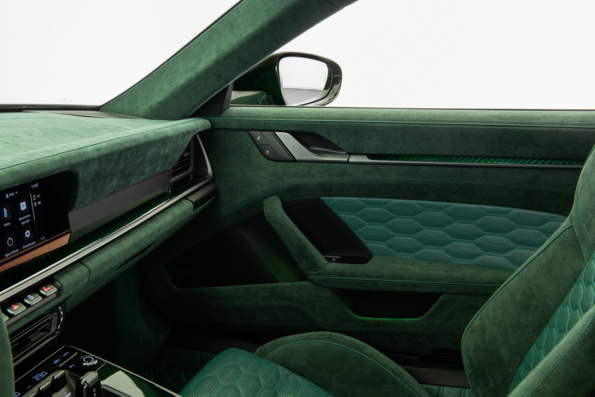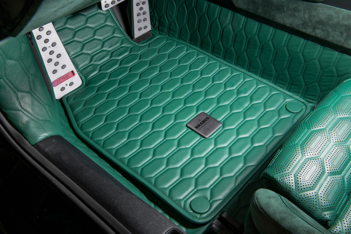 The wheels are paired with the BRABUS sports suspension system, which includes custom BRABUS coilover springs and fully adjustable shock absorbers. Built for both style and substance in typical BRABUS fashion, this setup allows for precision tuning of the ride height, creating a lower center of gravity for improved handling and cornering dynamics. Whether carving through tight turns or cruising on the highway, the BRABUS 900 ROCKET R MEAN GREEN delivers a driving experience that is as responsive as it is visually captivating.