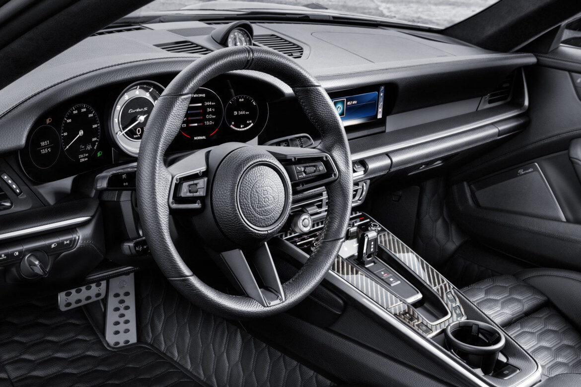 Likewise fine-tuned to combine style, performance and uncompromising functionality in one, the BRABUS high-performance sports exhaust system made from high-grade Inconel releases the force generated by the Rocket R’s ferociously beating heart with a breathtaking soundscape. Electronically controlled valves offer drivers the possibility of regulating the exhaust note from directly within the cockpit. In the closed position, the six-cylinder boxer operates in the rather subtle “Coming Home” mode – perfect for a relaxed cruise home after a day at the track. Alternatively, those who wish to experience the breathtaking cacophony of 900 hp can engage the “Sport” position and elicit the full range of the supercar’s power.