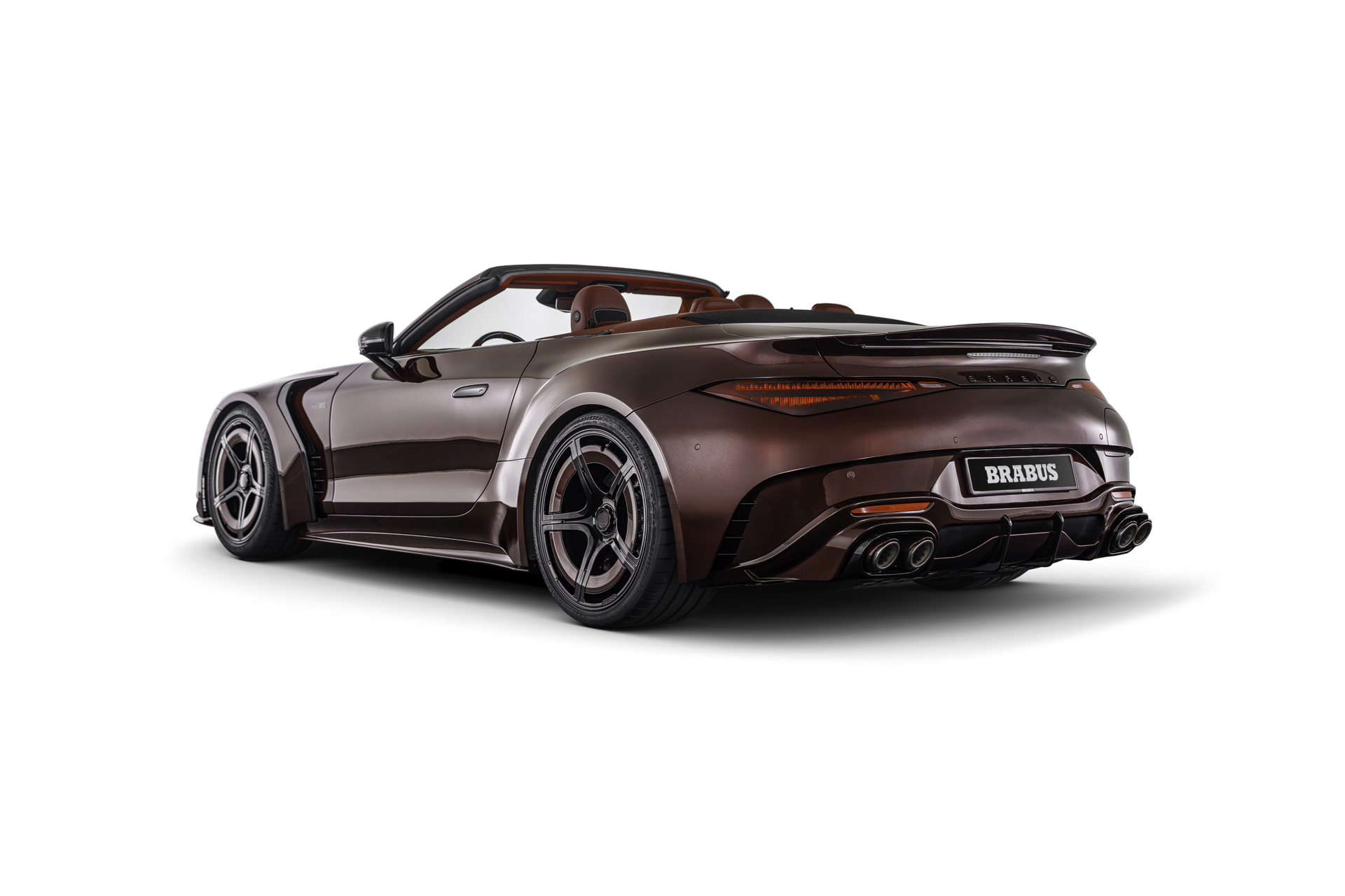 From the wide front wheel arches, the side sills channel airflow toward the BRABUS ROCKET rear quarter panels, which give the new open-top BRABUS supercar its imposing width of 198.5 centimeters (78.1 in.) at the rear axle.