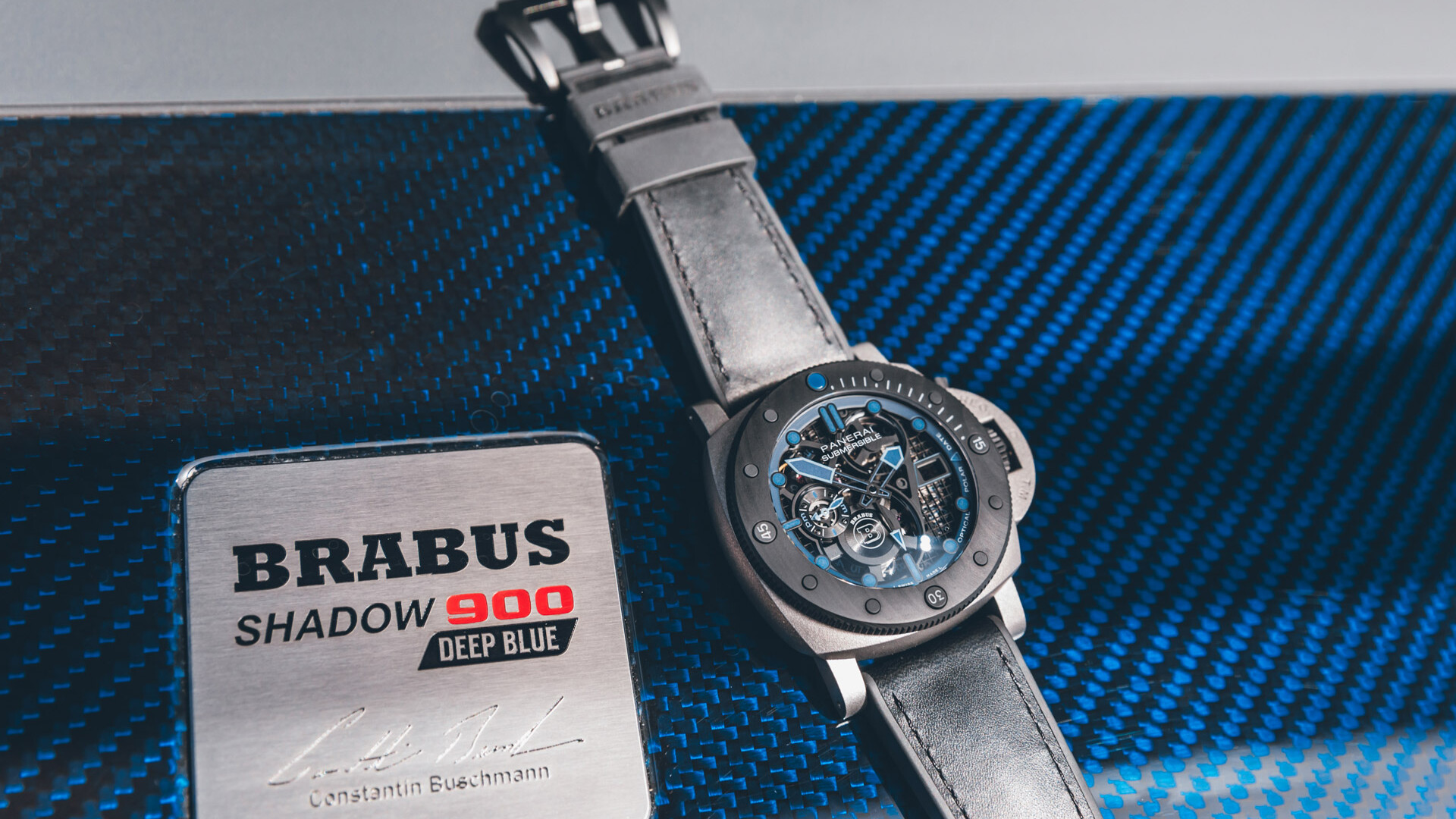 Matching the luxury superboat BRABUS Shadow 900 Deep Blue Signature Edition, the Panerai Submersible S BRABUS Blue Shadow Edition impresses with a range of blue and gray tones.
